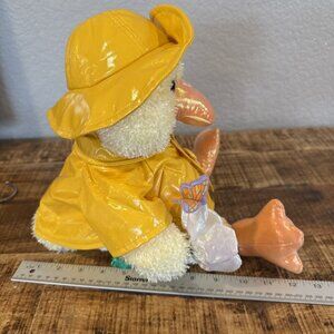 Commomwealth 2002 Yellow Duck Plush Stuffed Animal 16" Raincoat w/ Flower Used
