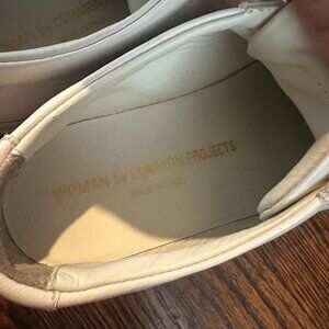 Sneakers are in fair condition. Slight creasing throughout the leather. No marks or stains on the leather besides the creases. Soles are discolored from outdoor wear.