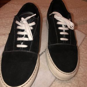 Common Projects, size 39, black with white sole. Mega comfortable, hands down one of my favorite shoe brands when it comes to quality sneakers. Worn only a handful of times!