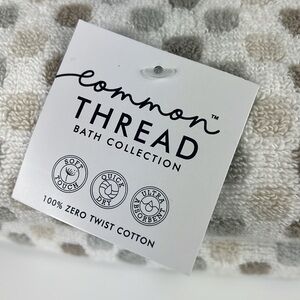 Common Thread Bath Towel Set Cream Gray Tan Dot Striped 100% Cotton 2 pc NEW