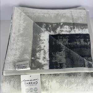 Common Thread Bath Towel Set Gray White Abstract Pattern 100% Cotton 2 pc NEW