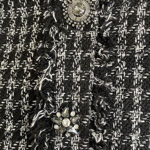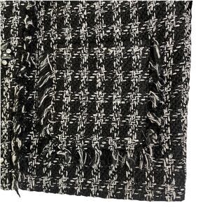 Common Unique Tweed Fringe Trim Houndstooth Embellished Buttons Blazer- S