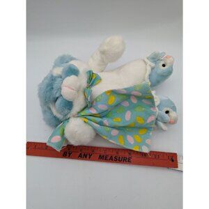Soft and cuddly plush bunny rabbit perfect for Easter celebrations. Features an adorable blanket with Easter eggs and bunny feet. Ideal for hugging and snuggling, adding charm to any nursery or playroom.