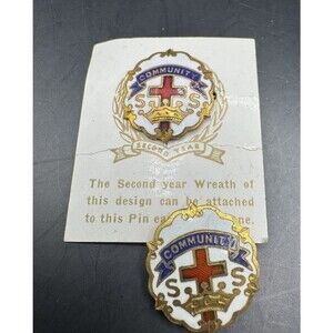 Community Enamel Lapel Pin Little's System Sunday School Lot of 2 White Gold