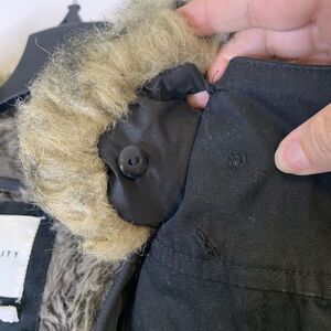 Aritzia Community Hooded Parka Coat XL Black Faux Fur Lined Removeable LiningWomens warm and cozy winter jacket