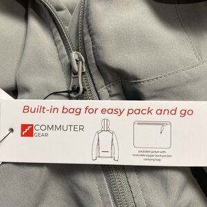 Commuter Gear Men's Grey Rain Jacket, Packable Jacket / Size-Large