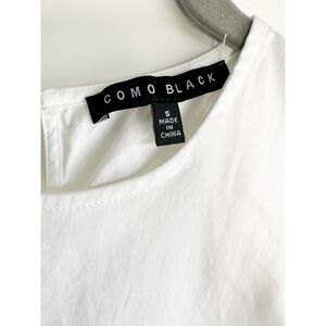 Como Black White Sleeveless Blouse Tie Back Size Small Office Career Workwear