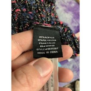 Como Black Womens Large Knit Sweater Size Large Metallic Pink Blue Wide Neck
