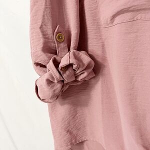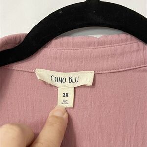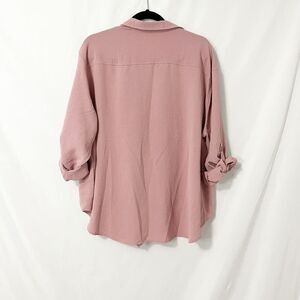🟢Como Blu Blush Pink Rill tab Sleeve Button Down Front Tie Blouse Size 2X