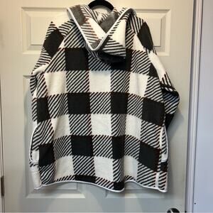 Como Blu Sweater Front Wrap Cardigan Side Pockets Plaid Checkered Gray White NWT