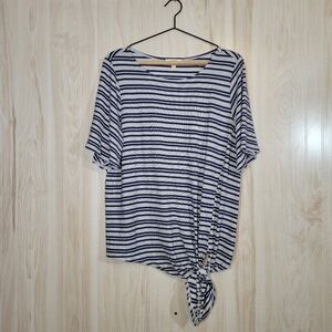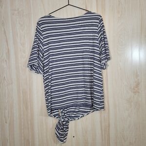 Beautiful navy & white striped tie-front top.