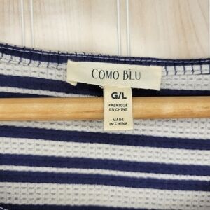 Como Blu White & Navy Tie-Front Top Sz Lg