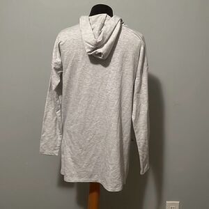This relaxed-fit, heather gray open-front hoodie is perfect for layering on those cooler days. Whether you pair it with leggings or jeans, its longer length adds a touch of sophistication. The front patch pockets and attached hood provide additional convenience, making it easy to keep your essentials on hand. Crafted with stretchable fabric, this athletic cardigan offers a comfortable fit that moves with you.