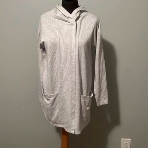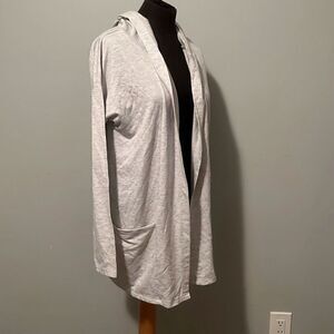 Como Blu Women's Heather Gray Open Front Hooded Athleisure Cardigan Sweater Medium