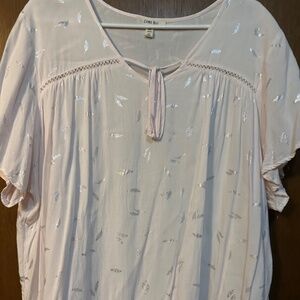 Como Blu Women's Plus Size 2X Baby Pink With Silver Feathers Pattern