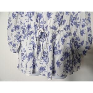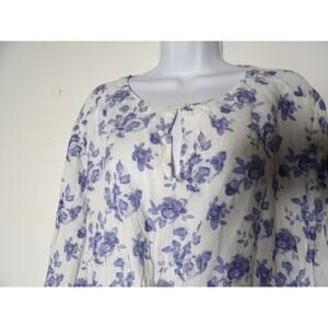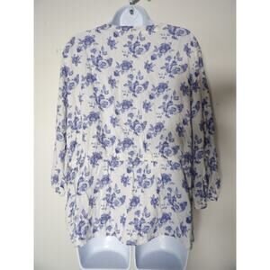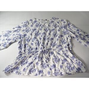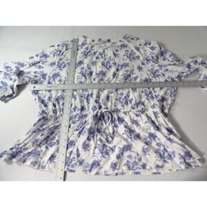 Como Blu Womens Top 3X Blue White Floral Prairie Cottage Core Cinch Waist