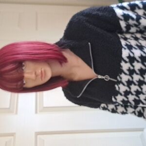 Como Blue Women's Houndstooth Half Zip Faux Jacket Size Medium NWT
