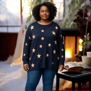 Como Vintage Black Pullover Star Design Sweater NWT Plus Sizes