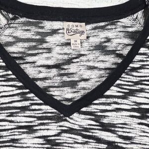 Como Vintage women’s long sleeve knit sweater, size 3X. Black and white marled pattern with soft textured fabric. Perfect cozy top for cool weather. Made in China.