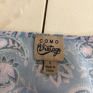 Como Vintage Blouse Women's Large V-Neck Floral Short Sleeve Tie Shirt Top