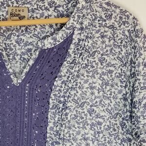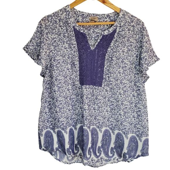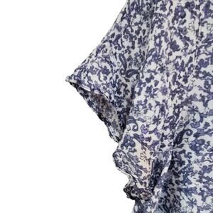 Como Vintage Blue V Neck Floral Flutter Sleeve Top Medium