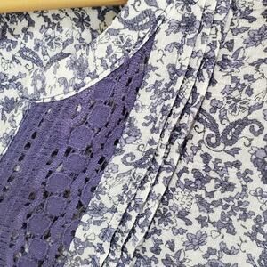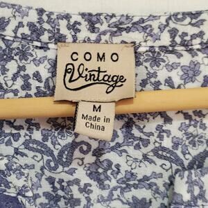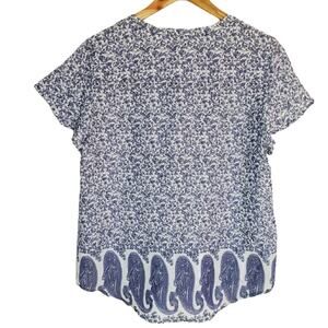 Como Vintage Blue V Neck Floral Flutter Sleeve Top Medium GUC without stains, rips, or holes.