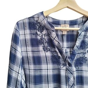 Como Vintage Plaid Button-down with Metallic Threading, Size Large