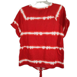 Como Vintage Red-Orange Tie Front Top Women Size M Short Sleeve