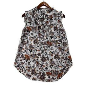 Como Vintage Tank Top Floral White and Red Ruffles Size M