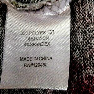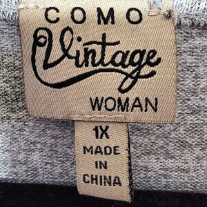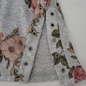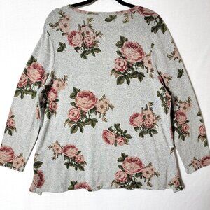 Como Vintage Woman Womens Pull Over Knit Top, 1X Tunic Style, Long Sleeve Grey Coral & Green Floral Polyester Rayon Spandex