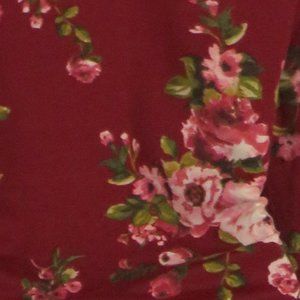 Pre-Owned Condition! 95% Polyester/5% Spandex. Beautiful Floral Print Design on a Burgundy/Wine Color Pullover Blouse.