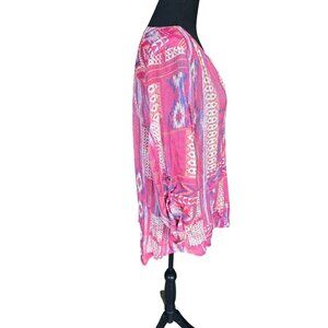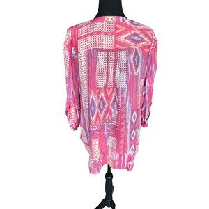 Como Vintage Womens Pink Aztec Boho Print Tunic Blouse XL Cottage Core Hippie