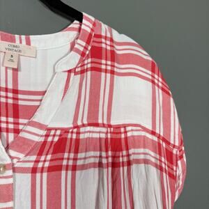 Como Vintage Women's Red & White Plaid Button Up Shirt - Size Small - Boxy Top