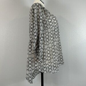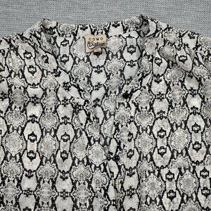 Como Vintage Womens Snake Print Blouse 2X Black Gray Long Sleeve Semi-Sheer