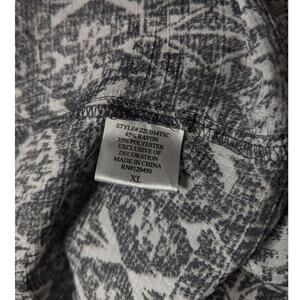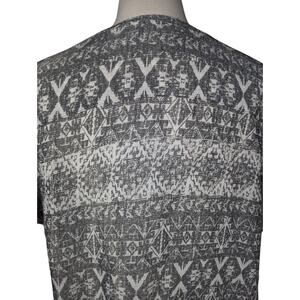 Como Vintage Women's XL Top Gray Aztec Print Short Sleeve Split Neck Lace