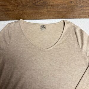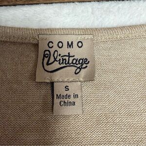Como Vintage size small Tan inverted V hem Long Sleeve Blouse