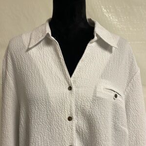 Beautiful COMO white button up blouse. Three-quarter length sleeves. Size 2X.