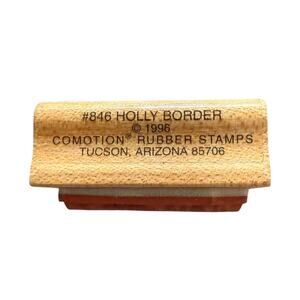 Comotion Vintage 1996 846 Holly Border Wood Mount Rubber Stamp
