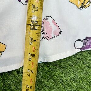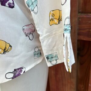 Add a touch of fun to your wardrobe with this playful print button-down shirt. Perfect for both casual and office settings, this top offers comfort and style.