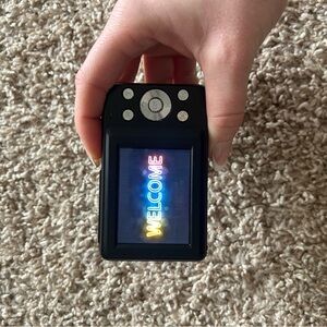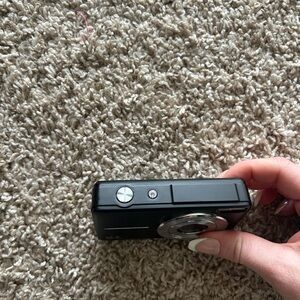Capture your moments with this sleek black digital camera. Perfect for on-the-go photography.