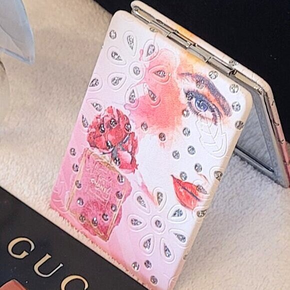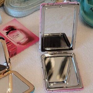 Pretty folding compact mirror. Measures approximately 4" x 2.5". Brand new without box or tags.