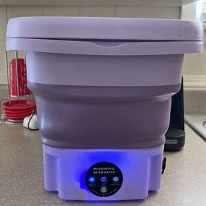 Efficient and stylish, this compact purple mini washing machine is perfect for small spaces. Enjoy easy laundry days with this convenient appliance. * This folding washing machine is integrated with washing and drying, multipurpose, small in size, but fully functional. Foldable washing machine + Blue Light & Drain basket, which is very suitable for washing children's clothing, underwear, socks, towels, etc. effectively remove, and make your clothes clean.