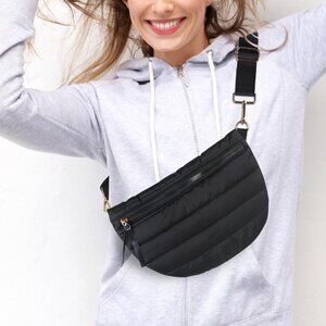 This Compact Quilted Puffer Purse is a super versatile and chic addition to your accessories collection. Perfect for when you want something functional yet stylish, this bag can be worn as a belt bag, crossbody, bum bag, or shoulder bag — it's all about how you style it! The trendy half-moon shape with gold accents adds a fun, modern vibe.