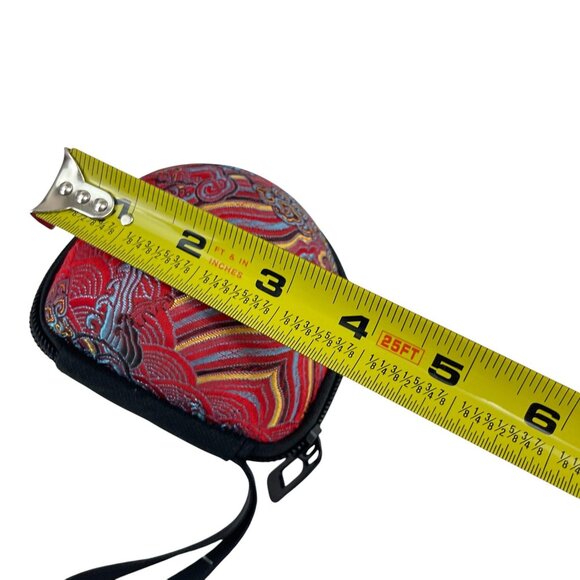 This intricately designed red brocade hard shell case offers a delightful blend of functionality and elegance. Its sturdy build ensures protection for your precious items, while the vibrant patterns reflect a touch of cultural artistry. The zipper closure and wrist strap add practicality, making it portable and ideal for everyday use.