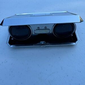 Explore the world with these sleek silver portable binoculars. Perfect for outdoor adventures and travel. Lightweight and easy to carry. Does have scratches and smudges as shown in the pictures.