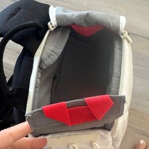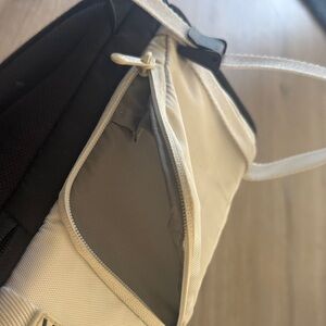 This sleek white camera sling bag offers a stylish and practical solution for photographers on the go. Designed for comfort and easy access to your gear. Slight satins on the outside. Very clean inside with several adjustable compartments, pockets, Velcro. Measurements: 14 inches tall by 10 inches wide and the 5 to 6 inches deep. Pet free and smoke free home.