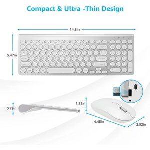 Compact Wireless Keyboard + Mouse Combo for Windows/Apple/Chrome (White/Silver)