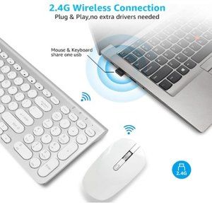 LeadsaiL: Compact Wireless Keyboard & Mouse Combo - Cordless USB Computer Keyboard & Mouse Set, Great for Laptop & Backpack (White/Silver)