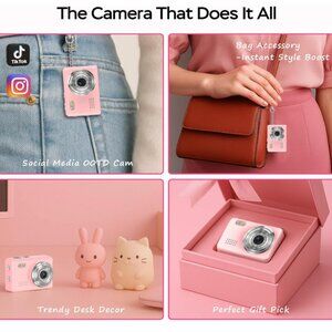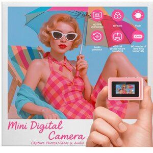 Capture moments with this stylish pink digital camera. Perfect for on-the-go photography.