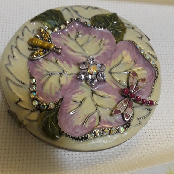 Beaded compact mirror with floral design Hinge loose NEW